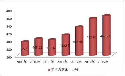 ↓2010-2015年中国羊肉需求量统计↓ ![]()